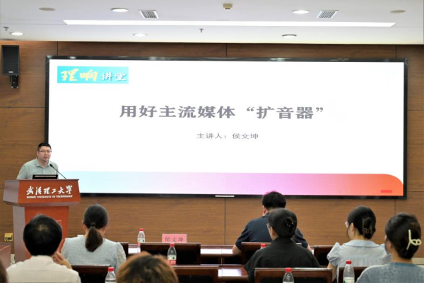 6月5日下午,由校党委宣传部主办的“理响讲堂”宣传思想文化战线业务培训在西院会议中心举行。新华社记者侯文坤担任主讲嘉宾,党委宣传部及部分师生参加活动。
