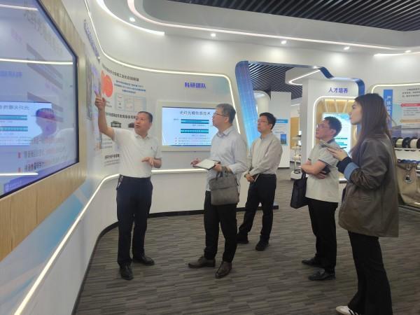 张晨一行实地参观考察了光纤传感技术与网络国家工程研究中心展厅,直观感受光纤传感的前沿技术与实际运用。